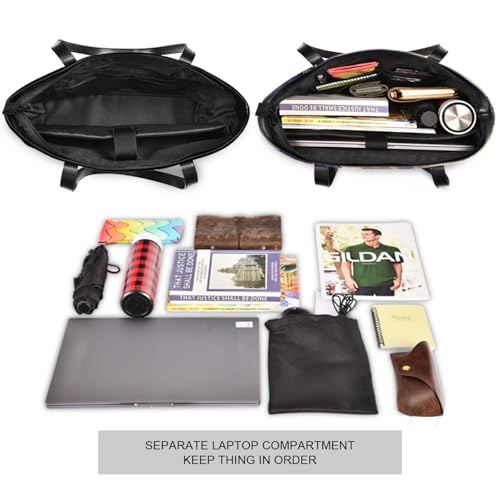 • ★【 Organizer Work Tote】:The work bags for women come with multi-compartments to meet all your work needs well. The laptop tote bag has an independent laptop compartment fits under 14 inch laptop and /tablet,a large main middle pocket designed for documents, book and gadgets,two small square pockets, two pen pockets,There has two side-pocket for power bank and water bottle inside.Stylish outer pocket with magnetic buckle,two zipper pockets and an anti-theft pocket,Easy access to items.