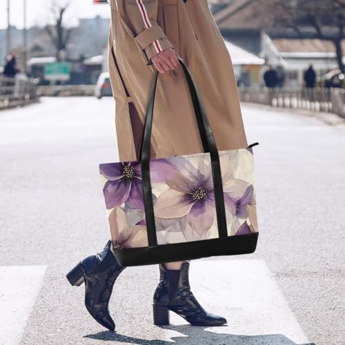 KLL Flowers Lavender and Beige Sturdy women work tote bag with zipper laptop tote bags for work Large Handbag for flight with lunch bolsos para mujeres 5