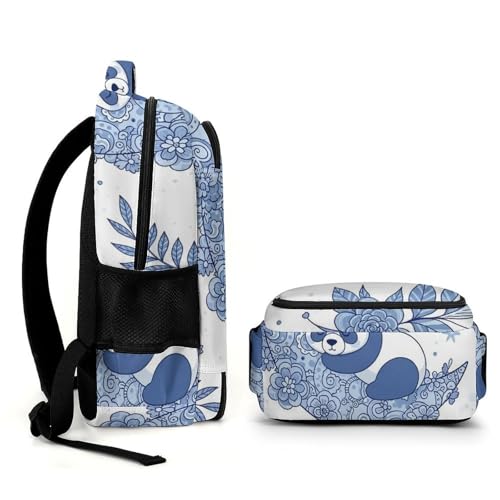 Men's Commuter Bag Large Travel Bag Portable Work Backpack With Double Zippers Blue And White Porcelain Moon Panda 5