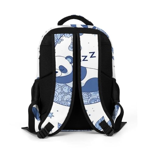 Men's Commuter Bag Large Travel Bag Portable Work Backpack With Double Zippers Blue And White Porcelain Moon Panda 6
