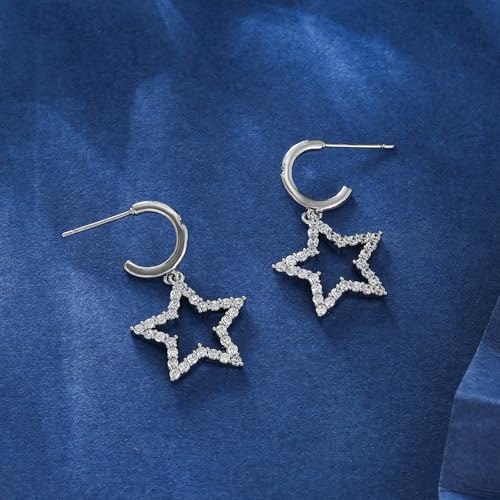 HOT ! Star Earrings for Women Rhinestone Star Earrings Dangle Silver Sparkly Earrings Dangly Star Stud Earrings Jewelry Hypoallergenic Lightweight