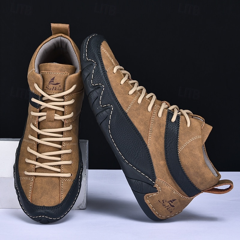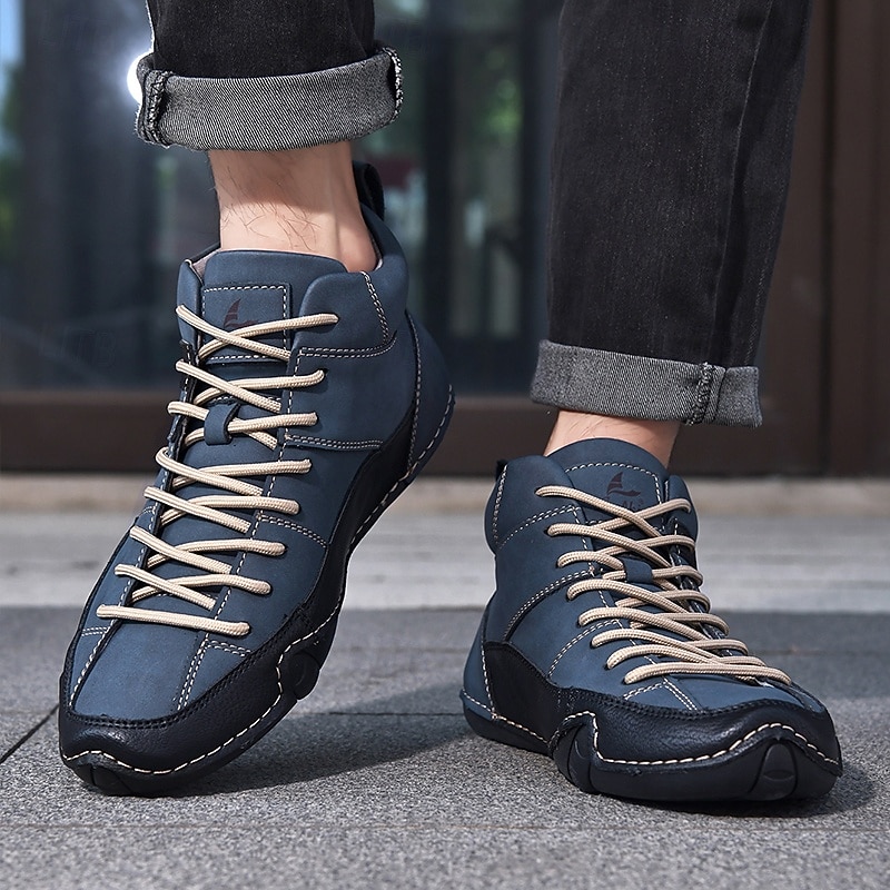 Men's Lightweight Lace-Up High-Top Casual Sneakers – Comfortable Faux Suede and Leather Design for Outdoor and Daily Wear 29