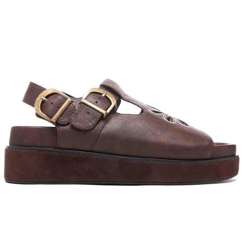 HOT ! Brown Flower Platform Sandals for Women with Adjustable Buckle Back Strap Comfort Summer Open Toe Slip on Slingback T-Strap Beach Sandals.