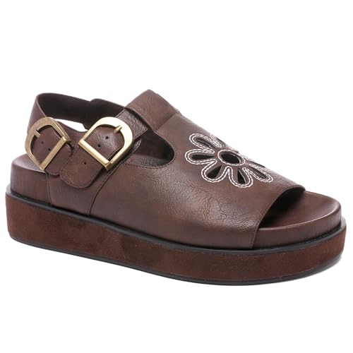 More information about Brown Flower Platform Sandals for Women with Adjustable Buckle Back Strap Comfort Summer Open Toe Slip on Slingback T-Strap Beach Sandals.