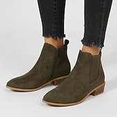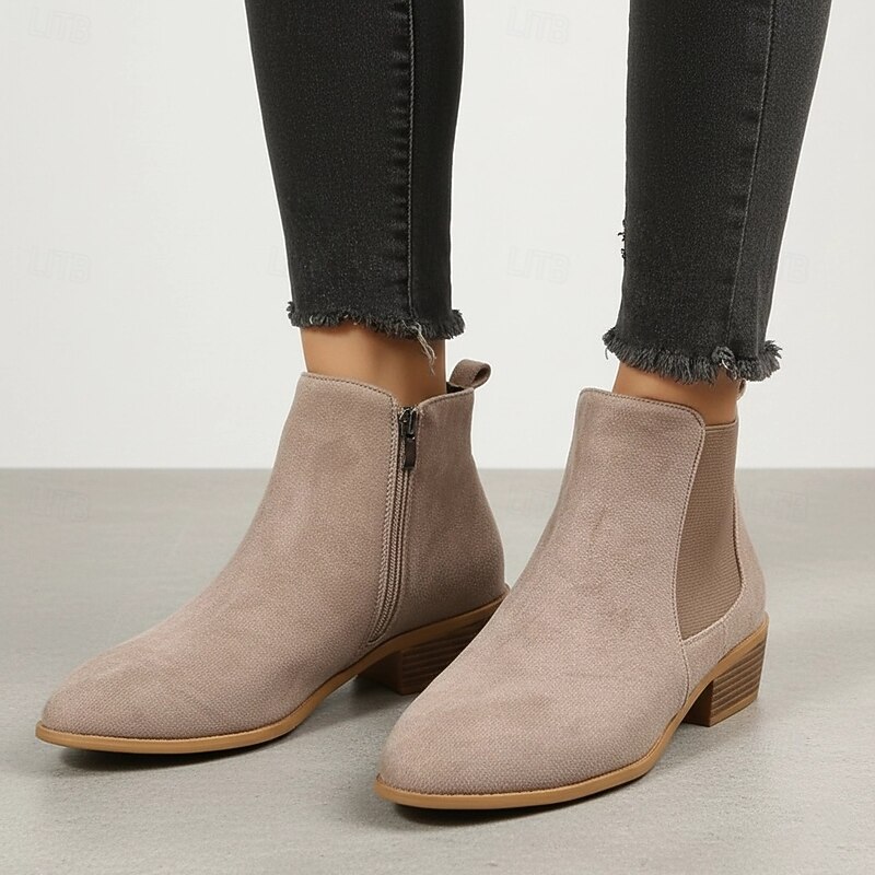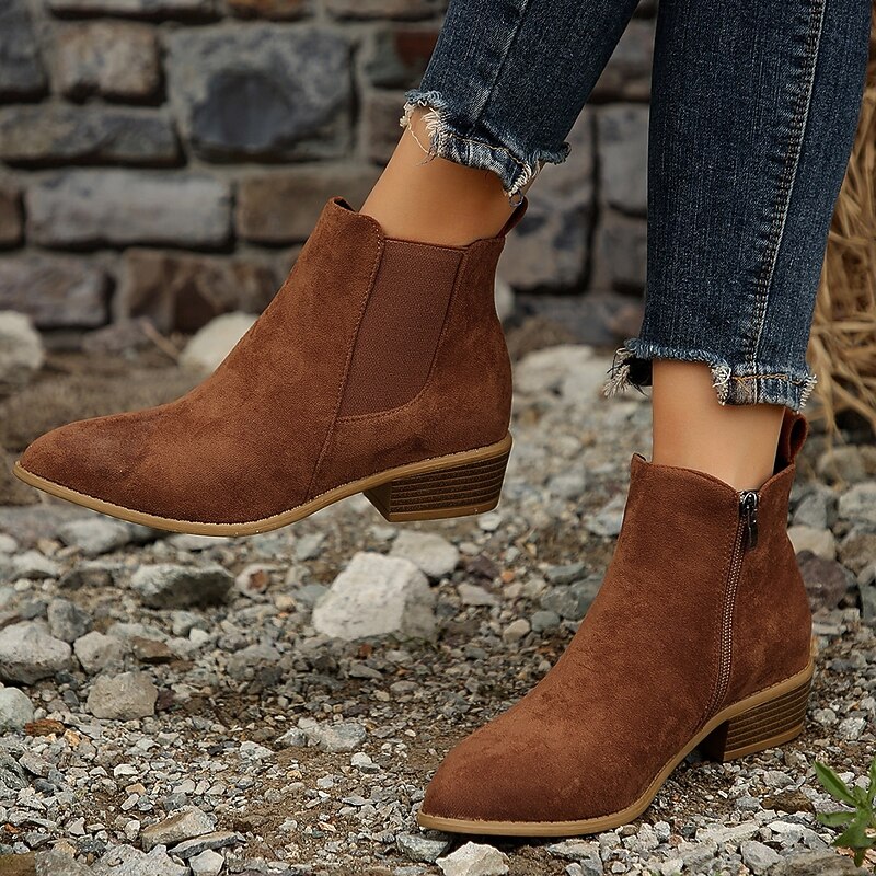 HOT ! Women's Suede Chelsea Ankle Boots with Side Zipper, Low Block Heel Slip-On Short Boots for Casual Fall Outfits, Outdoor Walking and Daily Wear