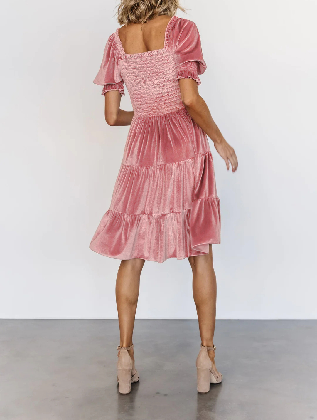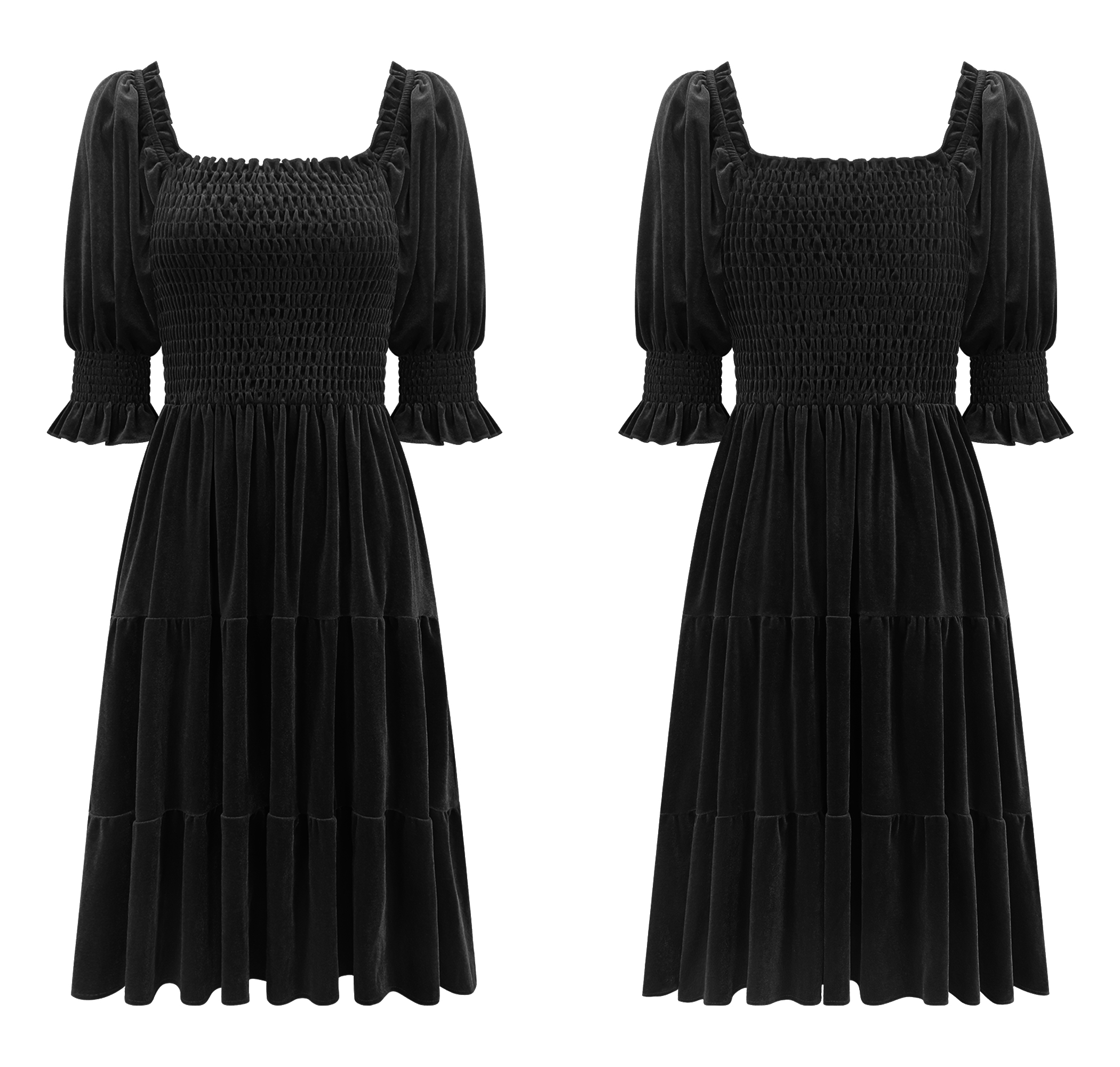 The velvet material gives the dress a gorgeous and advanced vibe. The square neck perfectly showcases your collarbone while puff sleeves add a playful touch that is both charming and stylish! Suitable for Casual, Wedding Guest, Party, Christmas, New Year, Daily Wear or some Formal Occasions etc.