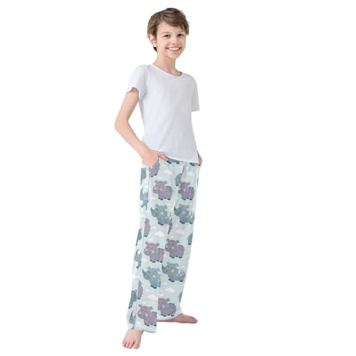 ALAZA Cute Rhinoceros Pajamas Bottoms with Pockets Comfy Pjs Sleepwear Elastic Waistband Pajamas Pants Lounge Pants for 6-14 Years 7