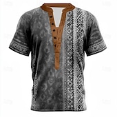 More information about Men's Tribal Ethnic T Shirt Henley Shirt Tee Short Sleeve Designer Basic Ethnic Outdoor Casual Daily Summer Green Khaki Gray Henley Henley T-Shirt
