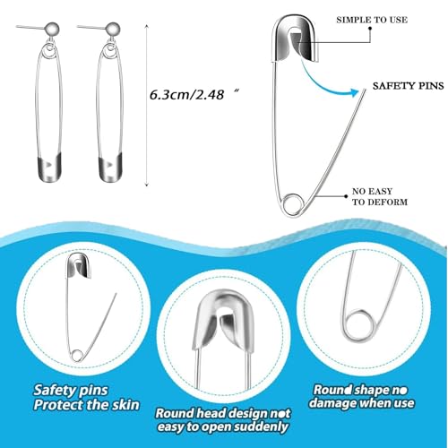 Paper Clip Earrings Stainless Steel Minimalist Safety Pin Silver Earrings Halloween Vampire Jewelry for Monster Cosplay Party 6