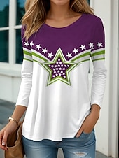More information about Women's Patriotic T Shirt Graphic Flag Vintage Stylish Classic Round Neck Regular Tops Daily Print Blue Purple Green Fall
