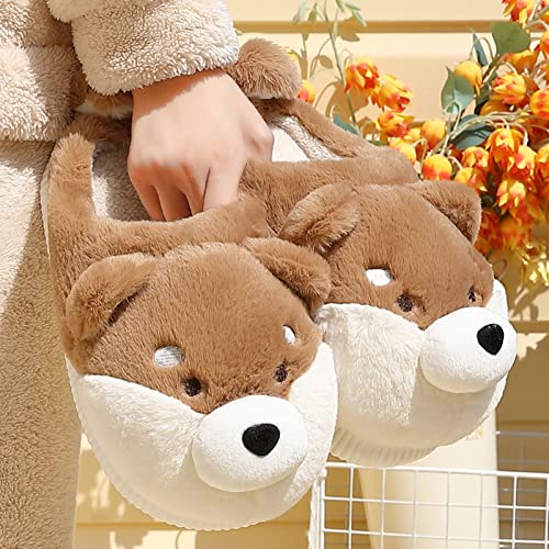 HOT ! House Women's Cute Akita Dogs Slippers - Warm Soft Plush Fluffy Cartoon Animal Home Shoes with Anti-Skid Rubber 4CM Thick Soled