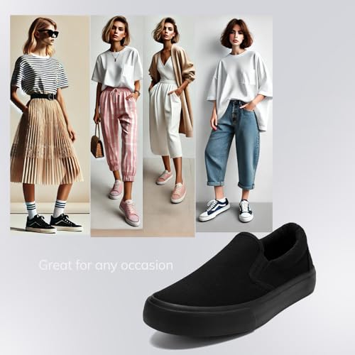 • EASY TO CLEAN, WASHABLE: Durable and washable STYLISH SLIP ON SNEAKERS unlike other similar sneakers on the market; Our SLIP ON fashion sneakers are made with superior canvas material, tough stitching and vulcanized rubber sole