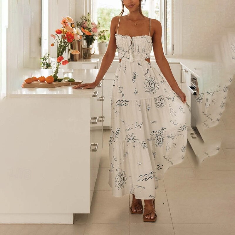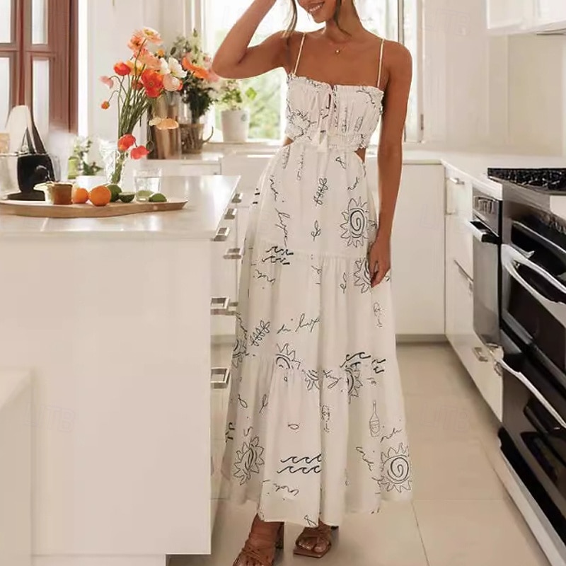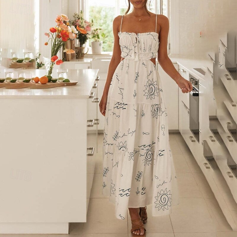 Highlights - Perfect for hot summer days - Made from pleasant polyester fabric - Sleeveless design for a cool and breezy feel - Designed for women - sophisticated slip dress with a trendy print - Chic spaghetti strap neckline - Flattering midi dress length.