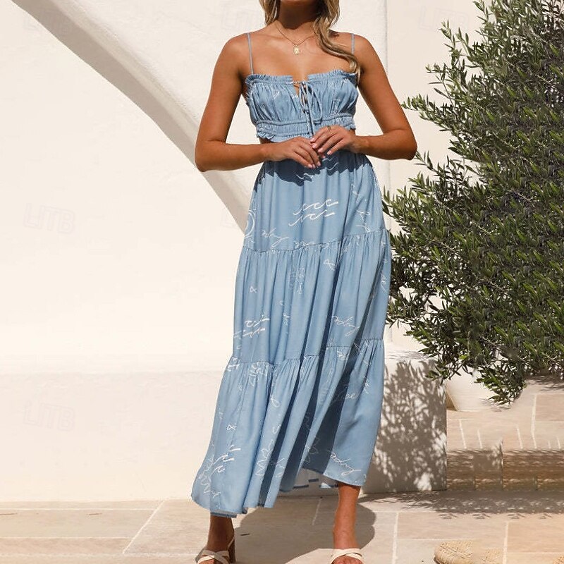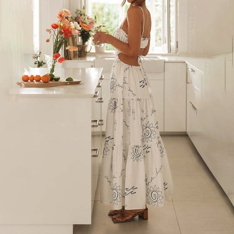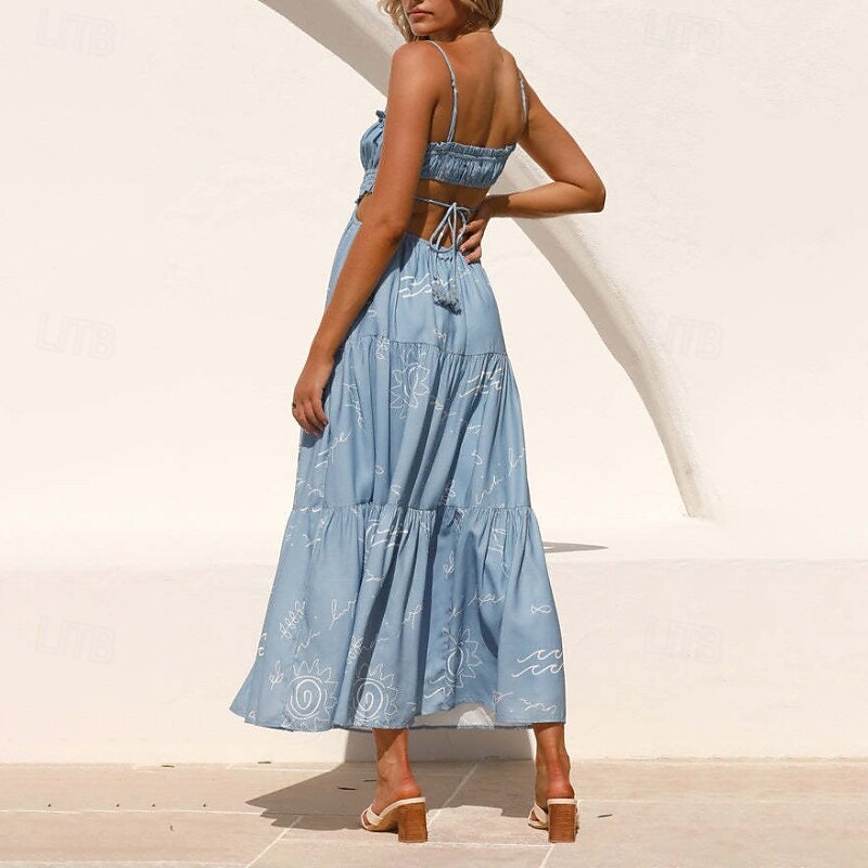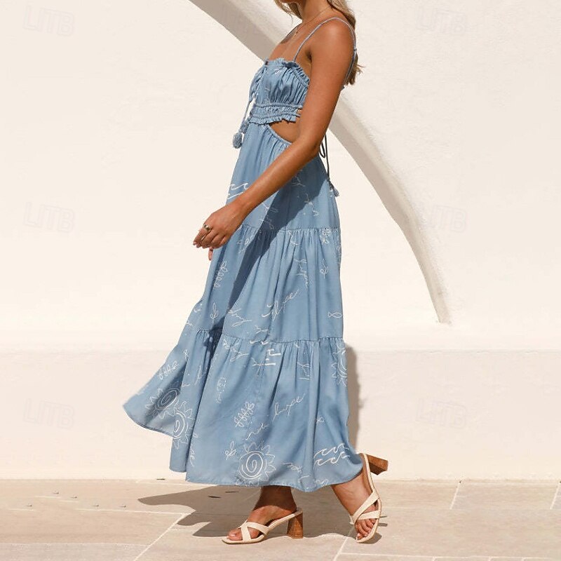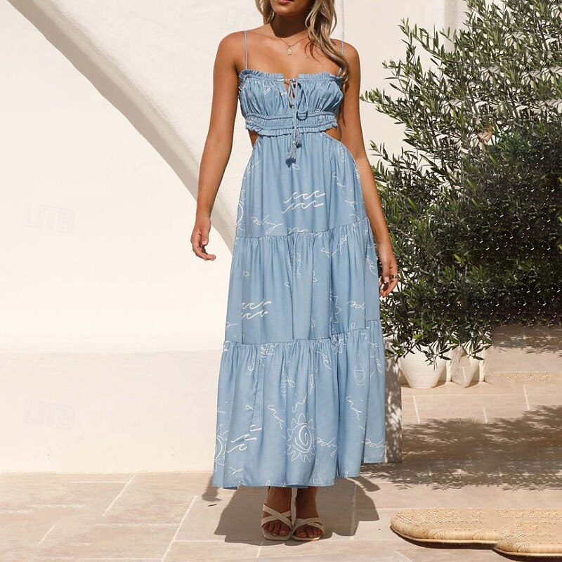 Women's Midi Dress Graduation Dress Floral Dress Slip Dress Print Dress Fashion Outdoor Holiday Weekend Regular Fit Flower Sleeveless Spaghetti Strap White Light Blue Summer
