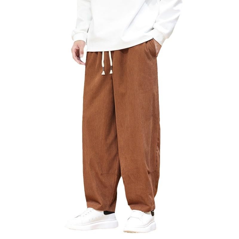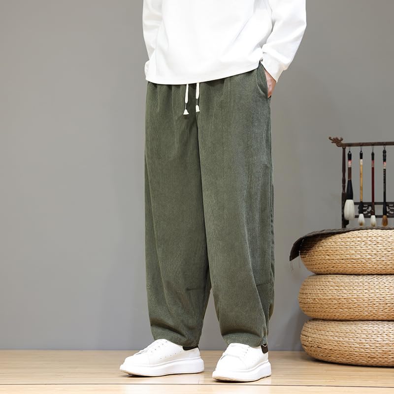 HOT ! Autumn Winter Chinese Style Retro Corduroy Straight-Leg Pants, Elastic Waist, Casual Big Tall