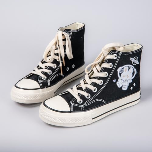 Bobo's House Womens Shoes Flying Space Bunny High Top Canvas Fashion Sneakers Walking Shoes Women Kawaii Accessories Black Shoe 5