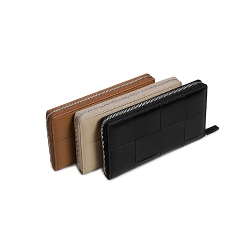 More information about Genuine Leather Woven Zip Around Wallet, Sheepskin Braided Long Wallet for Women, Luxury Clutch, Black