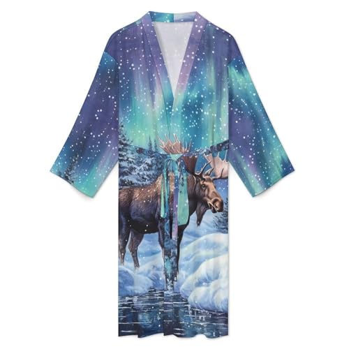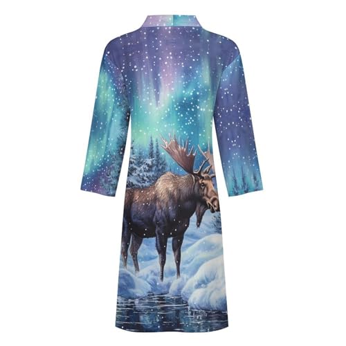 Alaskan Moose with Aurora Borealis Funny Men's Robe Soft Lightweight Bathrobe Long-sleeve Spa Robes 7