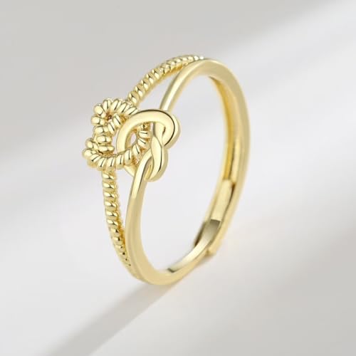 One Unbreakable Bond Double Band Knotted Ring,Nautical Double Rope Knot Promise Ring,Adjustable Designer Inspired Two Tone Crossover Band Ring 18K Gold Plated Twisted Eternity Cable Rings 6