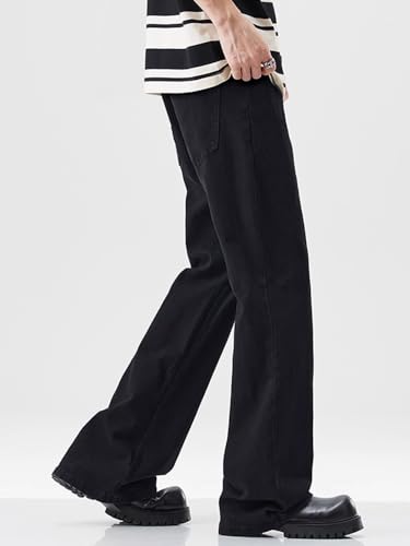 HOT ! Men's Black Denim Jeans American Retro Slim Straight Leg Pants