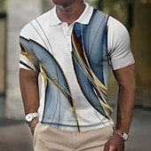 More information about Men's Geometic Line Waffle Polo Shirts Golf Shirt Short Sleeve Polo Shirts Collared Shirts Business Casual Outdoor Dailywear Athleisure Buttons 3D Print Summer White