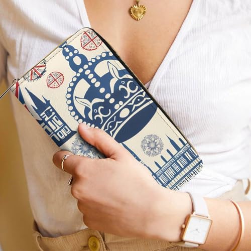 Vintage England London Big Ben Red Blue Crowness Wristlet Wallets for Men Women Leather Purse Clutch Cute Card Holder 7