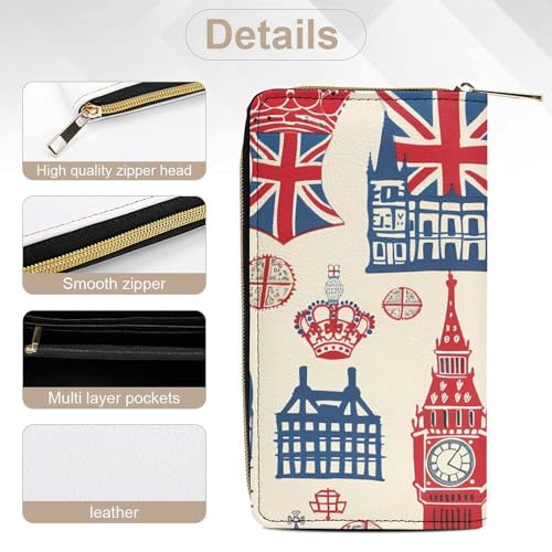 Vintage England London Big Ben Red Blue Crowness Wristlet Wallets for Men Women Leather Purse Clutch Cute Card Holder 4