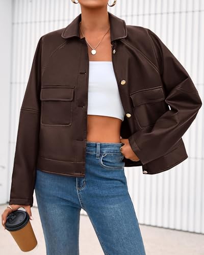 • FEATURES: Faux Leather Jacket Women, Long Sleeve Jackets, Button Down Coats, Oversized Jacket For Women, Leather Outwear Jackets, Front Patch Pockets, Solid Color, Fits For Spring, Fall, Winter