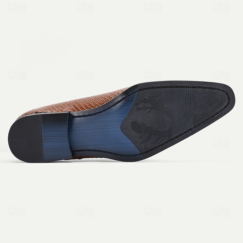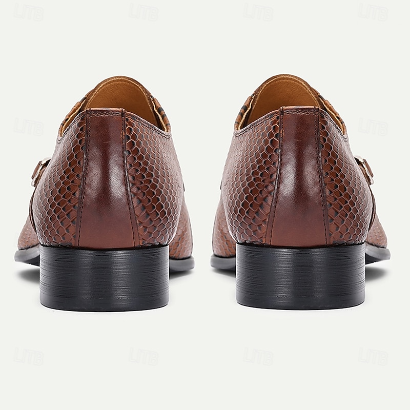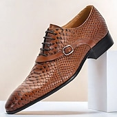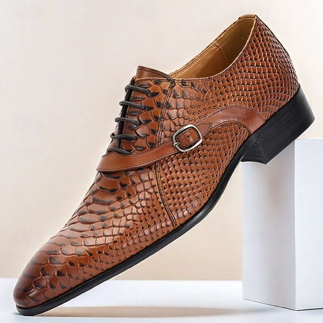 More information about Men's Brown Crocodile Pattern Leather Oxford Shoes – Elegant Prom and Banquet Dress Shoes with Side Buckle