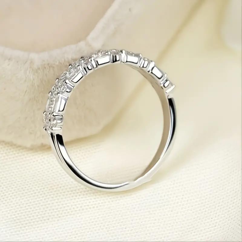 • Radiant Brilliance, AAAAA-grade cubic zirconia, radiating an exquisite sparkle akin to genuine diamonds, symbolizing the brilliance of commitment and love.