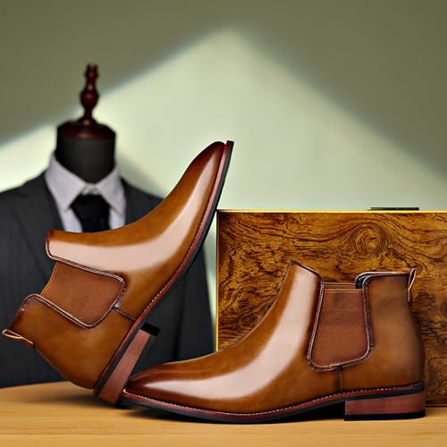 Men's Chelsea Boots PU Leather Lightweight Casual Chukka Ankle Boots Classic Elastic Dress Shoes for Men 6