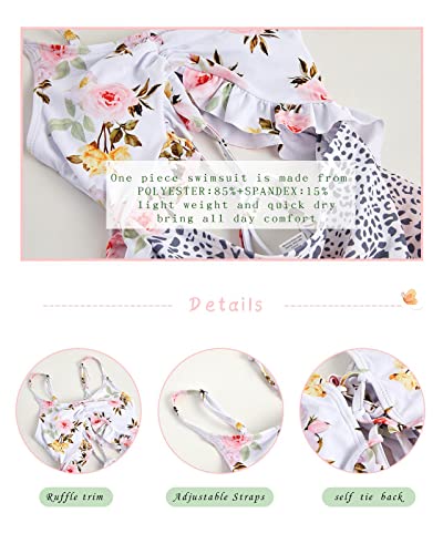 • Cute and fashion girls one piece swimsuits, floral printed, ruffle trim, adjustabel straps, self tie back, criss cross, tie front, cutout swimsuits, fantastic to wear at the beach.