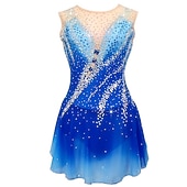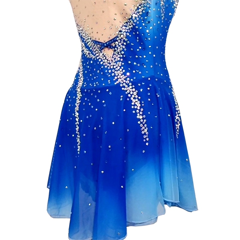 More information about Figure Skating Dress Women's Girls' Ice Skating Dress Outfits Blue+Light Blue Patchwork Asymmetric Hem Mesh Spandex High Elasticity Competition Skating Wear Handmade Crystal / Rhinestone Sleeveless