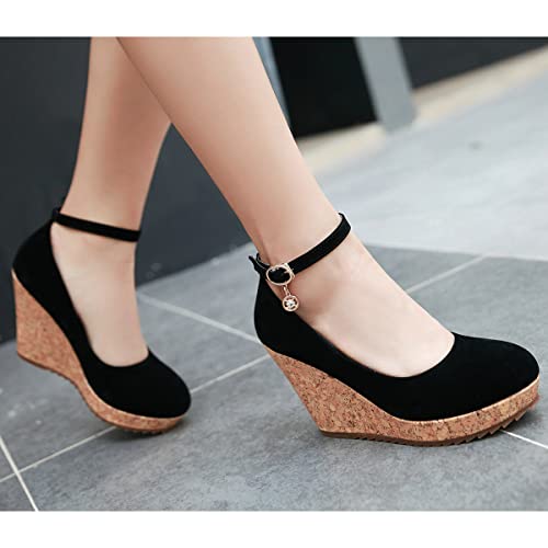 Uniquelly Womens Wedge Mary Janes Thick Platform High Heel Pumps Ankle Strap Round Toe Fashion Shoes 6