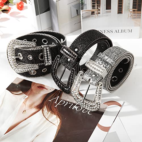 Kajeer Rhinestone Belt for Women Men, Bling Belt Vintage Cowgirl Belt Sequin Diamond Studded Western Cowboy Belts for Jeans 3