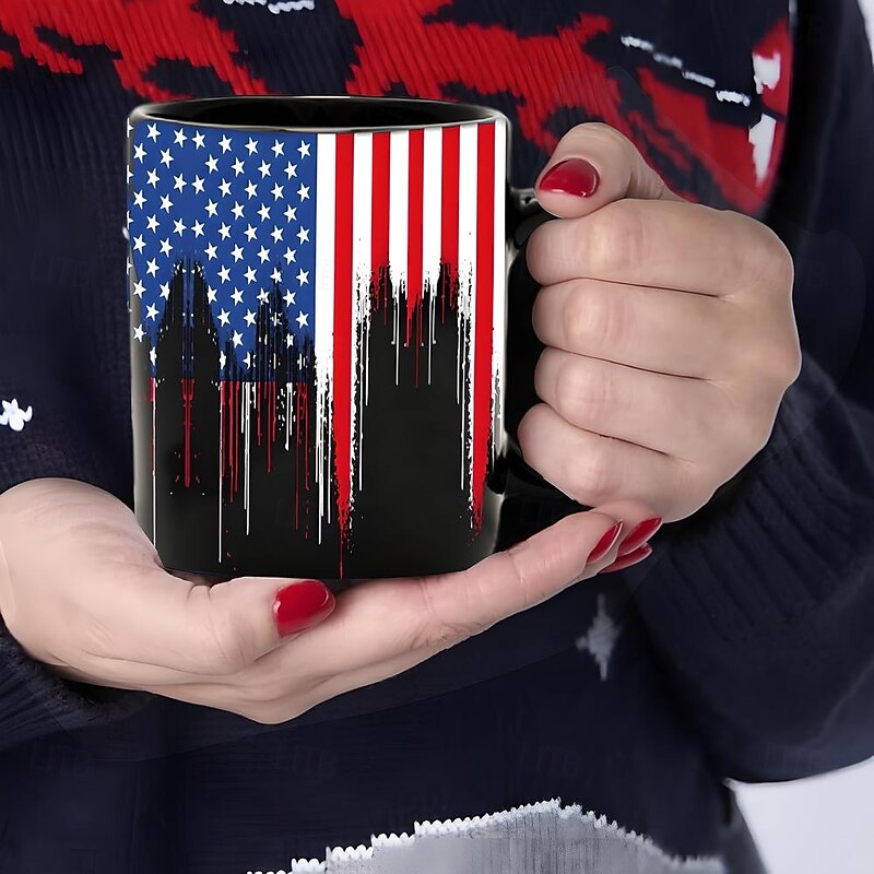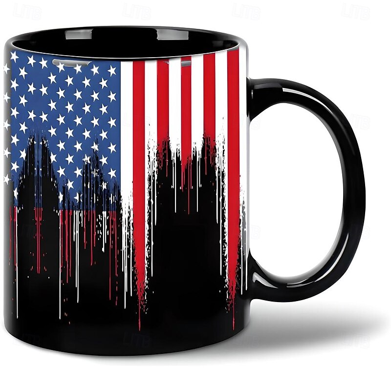 HOT ! Patriotic American Flag Mug Dripping USA Flag Design Black 11oz Coffee Cup Independence Day Veterans Military Gift for Men Women Dad Mom July 4th Christmas