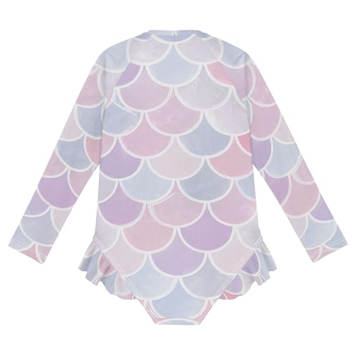 Pink Mermaid Scales Girls Long Sleeve Rashguard Swimsuit UV Protection One-Piece Swimwear Bathing Suit B0405120 1