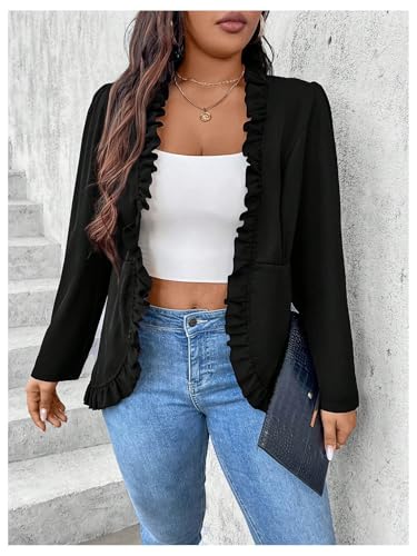 HOT ! SHENHE Women's Plus Size Open Front Ruffle Trim Elegant Business Casual Office Blazer Jacket