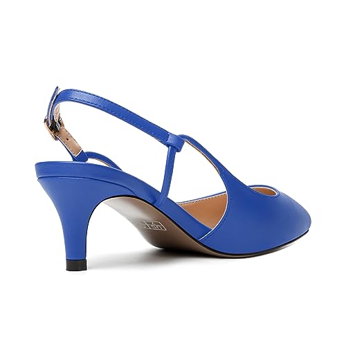 MERRORI Womens Matte Pointed Toe Slingback Buckle Casual Office Kitten Low Heel Pumps Shoes 2 Inch 5
