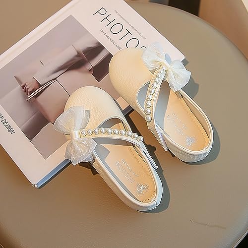 HOT ! Eliogn Girls Dress Shoes Mary Jane Wedding Flower Girl Flats Pearl Glitter Rhinestone Princess Shoes for Kids Toddler Sparkle Butterfly Ballet Flats Fashion Party Roman Shoes