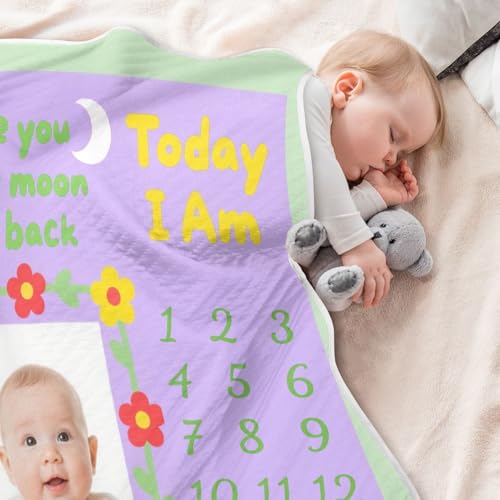 Custom Cute Baby Milestone Photo Purple Colorful swaddling Blankets Soft personalizado para Photo Monogrammed Blankets for Newborns, Infants, & Toddlers 30x40in Mantas para 7