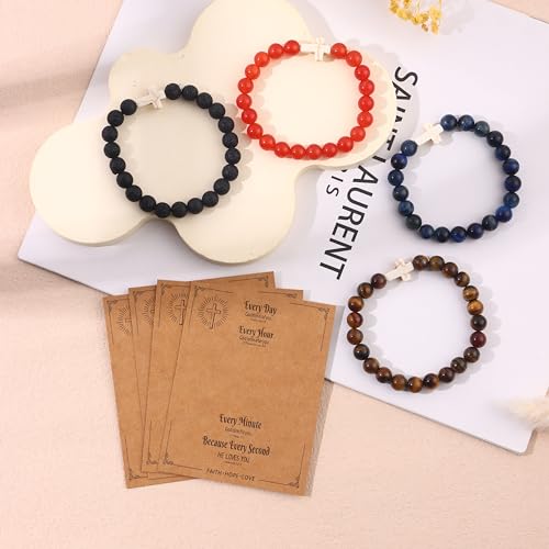 CASDAN 12Pcs Cross Bracelets for Women Men 8mm Stone Bracelet Crystal Bracelets Semi-Precious Gemstone Bracelet Set for Christian Gifts 4