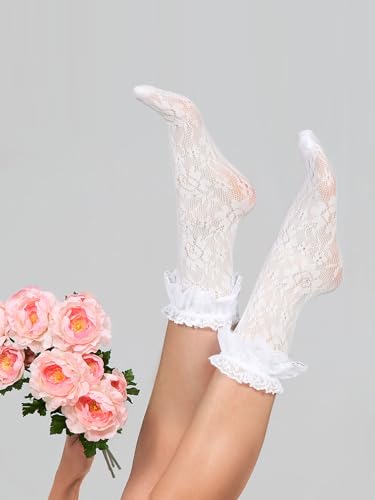 Geyoga 6 Pairs Slouch Lace Socks Women Cute Mesh Frilly High Loose Ruffle Ankle Socks for Women Girls Dress 6