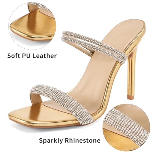 Fabric type: PU leatherSole material: RubberOuter material: RhinestoneClosure type: Slip OnComfortable & Breathable: These prom heels for women are equipped with soft sponge insoles, which can effectively support the feet and distribute the pressure on the soles of the feet. The open-toe design keeps your feet feeling cool even during the hot summer.Fashionable & Versatile: The design of these stiletto heels for women is simple and chic, with 4.3-inch heels that perfectly highlight the beauty of the leg curves. These womens heels can be paired with wedding dresses or formal attire.Easy On & Off: These womens heels for wedding feature a convenient slip-on design, eliminating the hassle of complicated tying laces. It is an indispensable choice for busy people.Non-slip Outsole: The rubber outsole of womens heels offers excellent wear resistance, while its deep-textured pattern enhances friction with the ground to provide reliable protection for every step you take.Various Occasions: These womens heels pair perfectly with everyday jeans or skirts, and are suitable for casual date, shopping, wedding, banquet, graduation, prom, or work. Their shiny diamonds showcase your unique charmβan indispensable element for women attending parties. Perfect for everyday use. supreme materials and excellent craftsmanship ensure long-lasting durability.