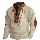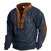 Men's Sweatshirt Apricot Navy Blue Brown Standing Collar Color Block Lace up Sports & Outdoor Daily Holiday Corduroy Streetwear Basic Casual Fall & Winter Clothing Apparel Hoodies Sweatshirts Long