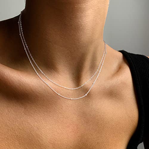 popular ! MBW Layered Necklaces for Women, Dainty Silver Plated Snake Twist Rope Chain Necklace for Women elementary Herringbone Thin Snake Chain Satellite Choker Necklace Silver Jewelry Set Gifts for Women Girls