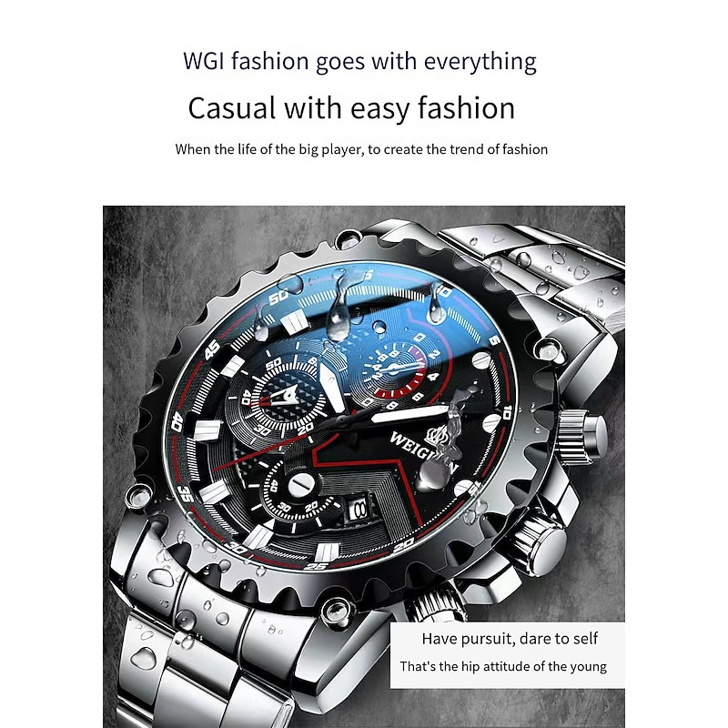 WEIGUAN Quartz Watch for Men Men's Wrist Watch Chronograph Analog Quartz Stylish Dial Case Casual Calendar Noctilucent Alloy Stainless Steel Creative Elegant Gift Watch for Men