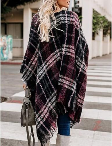 Women's toasty Shawl Wraps Plaid Poncho Cape Long Tassel Blanket Pashmina Sweater Coat Open Front Cardigan Block Floral Stripe