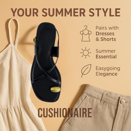 CUSHIONAIRE Corfu Flat Sandals for Women – Strappy Design with Toe Loop and Adjustable Ankle Strap – Lightweight Summer Dress Sandal