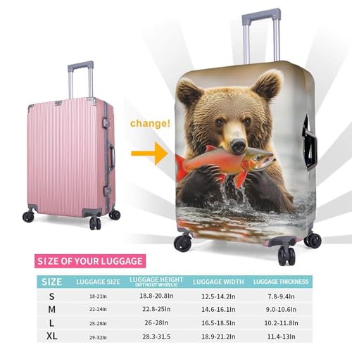 • exclusive pattern design: bear catching salmon print bright color luggage protector would make your luggage convenient to identify on the luggage belt at the airport. Double-stitched all over, high elasticity, ensure your suitcase stays shut during the trip.